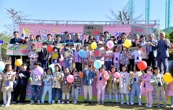 ‘세대이음 희망 업(Up), 세대화합 예스(YES), 세대갈등 노(NO)’를 구호(슬로건)로 내건 이날 행사에서는 함께 가치 선언, 1·2·3세대 문화공연, 세대 어울림 부대행사(에코존, 세대이음존, 고령친화존, 푸드존) 등 모든 세대가 즐길 수 있는 다양한 놀이와 체험으로 진행됐다.