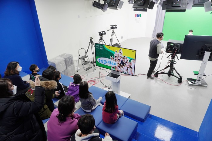 | ▲ 어린이들이 중랑미디어센터 어린이 뉴스제작 체험에 참여하고 있다. (사진제공=중랑구청) |