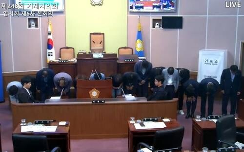 앞서 거제시의회는 의장 선거 과정에서 '내부 이면 합의서' 논란과 상임위원장 선거 과정에서 '약속 번복' 논란 등이 일며 파행을 거듭한 끝에 지난 4일에서야 후반기 의장단 원 구성을 마쳤다.