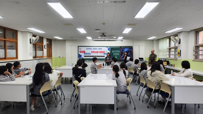 첫 번째 강연은 동탄1동 예비군 동대장이자 현직 직업군인인 강석진 예비군동대장이 맡아 군인의 삶과 군 조직 내 다양한 직무, 사명감과 책임감 등에 대해 진솔한 이야기를 전했다. 또한 군사 관련 진로 진입 경로 등 학생들이 평소 접하기 어려운 정보와 궁금증을 중심으로 강연을 진행해 큰 호응을 얻었다.