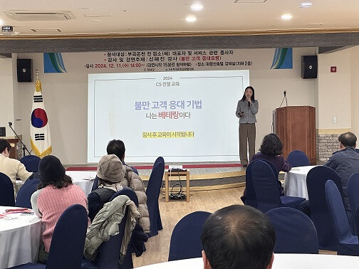 이번 하반기 교육에서는 신혜진 CS강사(SM스피치)가 ‘불만 고객 응대 기법’ 및 ‘친절 서비스 제공’을 주제로 강의를 진행, 종사자들로부터 높은 호응을 얻었다.