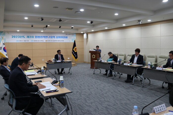 [안동=박병상 기자]경상북도의회는 지난 1일(월) 2023년도 제2차 「입법정책 연구용역 심의위원회」를 개최하고, ‘경상북도학교안전연구회’ 외 5개 연구단체로부터 제안된 6건의 현안연구과제에 대하여 심도 있게 검토했다.