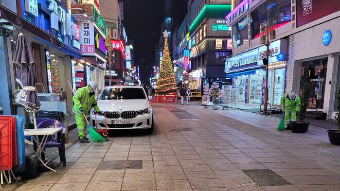 | ▲ 야간 청소 인력들이 노원역 일대를 청소하고 있다. (사진=노원구청 제공) |