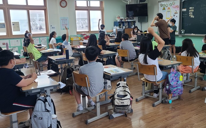 | ▲ 2022년 7월 초등학생들을 대상으로 찾아가는 집단프로그램이 진행되고 있는 모습. (사진=인천 강화군청 제공) |