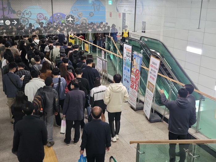 | ▲ 김포골드라인 긴급 점검으로 인해 줄을 서서 대기하고 있는 이용객들. (사진=김포시청 제공) |