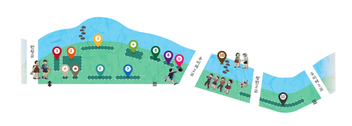 이밖에 우이제2교~우이제3교에 구간에 마련된 ‘철수와 영이 담벼락길’에서는 김태형 화백의 철수와 영이 원화를 활용한 벽화 18편을 감상할 수 있다.