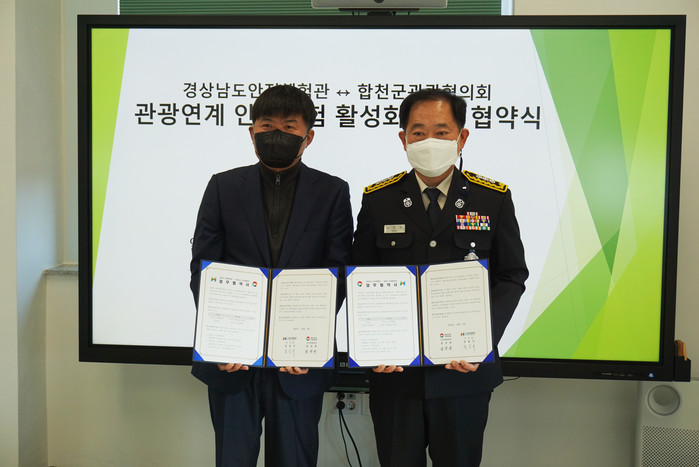(사)합천군관광협의회(이사장 강길수)는 7일 11시 경상남도안전체험관 회의실에서 경상남도안전체험관과 합천군 관광자원을 연계한 안전체험교육 활성화에 상호 협력하고자 업무협약을 체결했다고 8일 밝혔다.