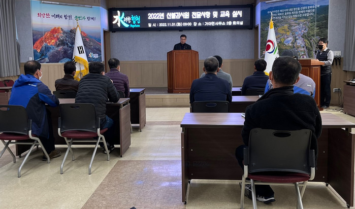 이번 교육은 근무기간 동안 산불감시원이 지켜야 할 근무규칙과 산불 발생 시 신고 및 대처요령 등에 대해 집중적으로 교육을 실시하여, 무단결근, 음주 등 불성실한 근무태도를 미연에 방지하고 산불 발생 시 신속하게 대응할 수 있도록 역량 강화에 힘썼다.