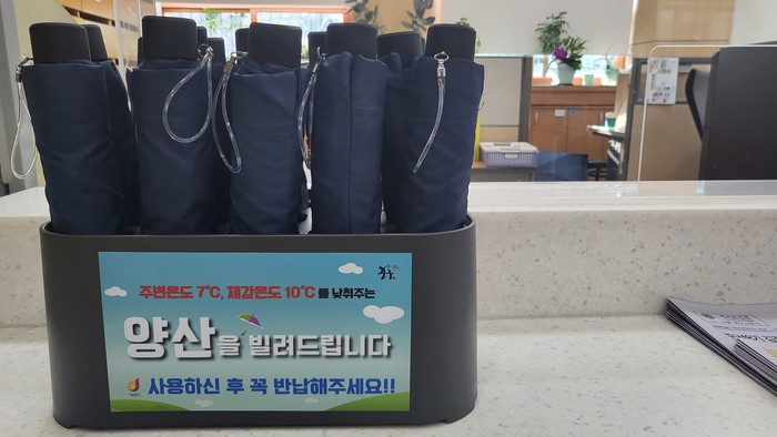 양산대여소는 구청 민원실과 동별 우리동네관리사무소 또는 주민센터 민원실 등 모두 16곳에 양산 650여개를 비치해 구민들이 자유롭게 이용하도록 하고 있다.