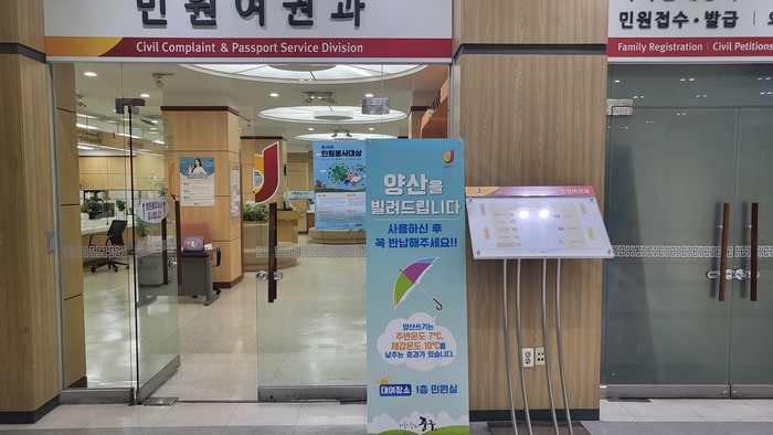 | ▲ 구청 민원실 양산대여소.(사진제공=중구청) |