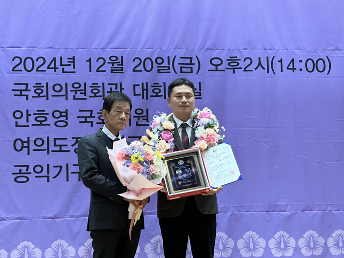 [남악=황승순 기자]전남도의회 임형석 의원(더불어민주당ㆍ광양1)이 12월 20일, 국회의원회관 대회의실에서 열린 ‘2024 대한민국 지방자치평가 의정정책대상’ 시상식에서 광역의회 부문 최우수상을 받았다. 지난해에 이어 두 번째 수상이다.