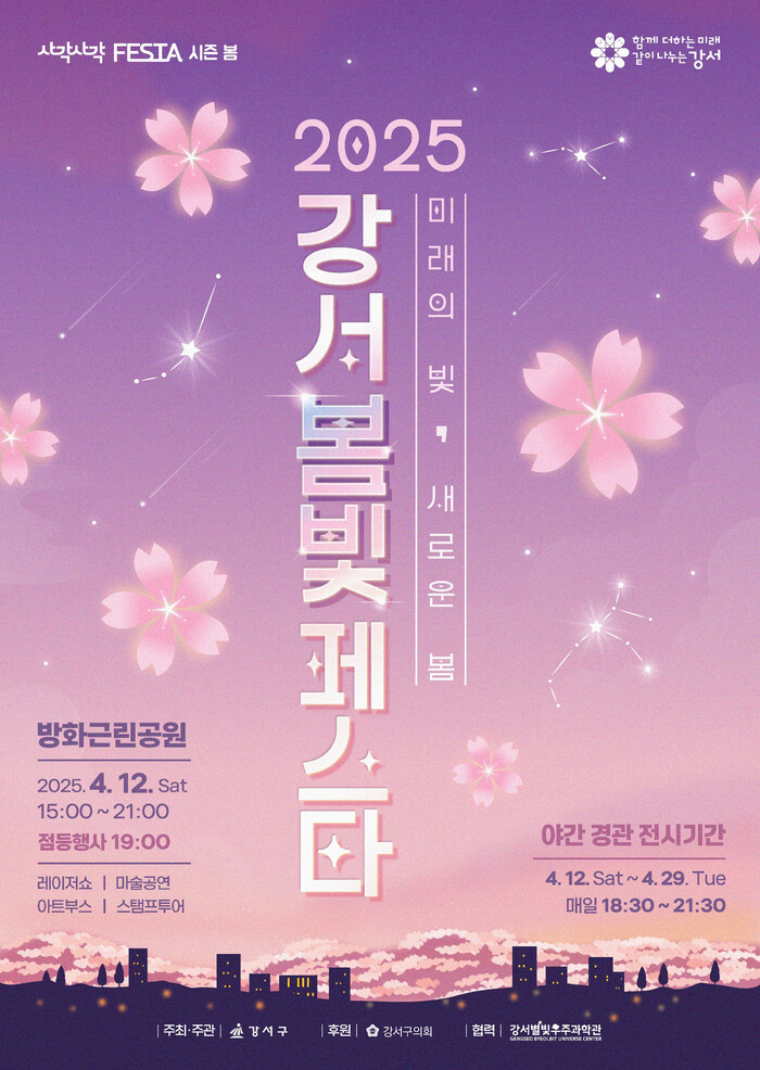 이밖에도 이날 행사장 곳곳에서는 강서별빛우주과학관과 함께하는 천체 관측 체험, 소상공인과 지역예술가가 참여하는 플리마켓, SNS 참여 이벤트 등 각종 부대행사를 즐길 수 있다.