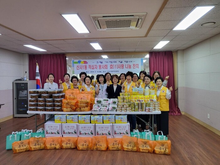 이번 나눔 잔치는 관내 저소득 취약계층 30가구를 대상으로 진행했다. 신사1동 적십자 봉사회 회원들이 직접 담근 열무김치와 갈비탕, 떡, 각종 반찬류 등을 나눔꾸러미로 구성해 직접 전달했다.