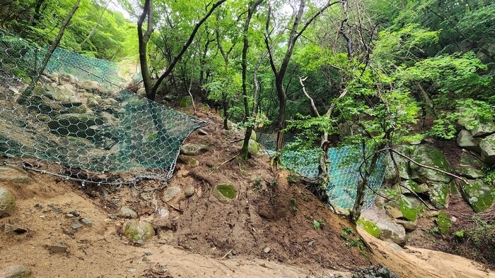 시는 국가유산청 긴급예산(국비) 7억 확보해 먼저 지난 5월부터 7월 중순까지 토석류 방지망 6곳 설치 공사를 추진했다.