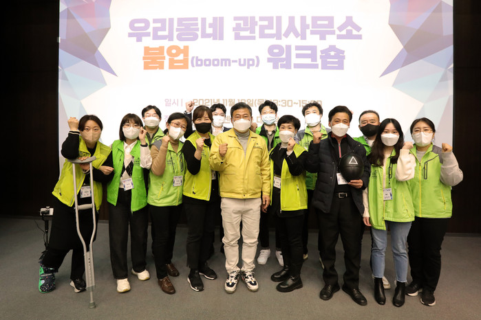 2시간에 걸쳐 진행된 워크숍은 각 동별 '우동소' 거버넌스와 특화프로그램, 우수사례 등 그간의 성과를 공유하고, 우동소 로고송 '모두가 행복한 우리동네 관리사무소'를 발표하는 자리를 가졌다. 이어 참여 주민의 소감과 응원 메시지를 나눈 후 서 구청장의 격려 인사와 향후 발전방향에 대한 제시로 마무리됐다.