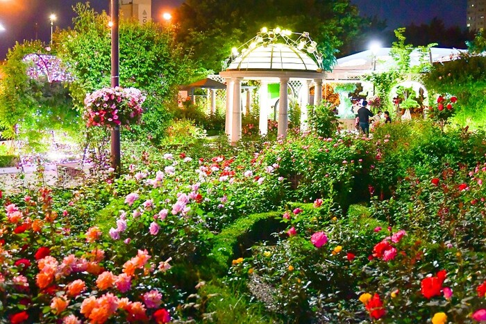 | ▲ 2019 서울장미축제에서 야간조명이 켜진 수림대공원 내부 모습. (사진=중랑구청 제공) |