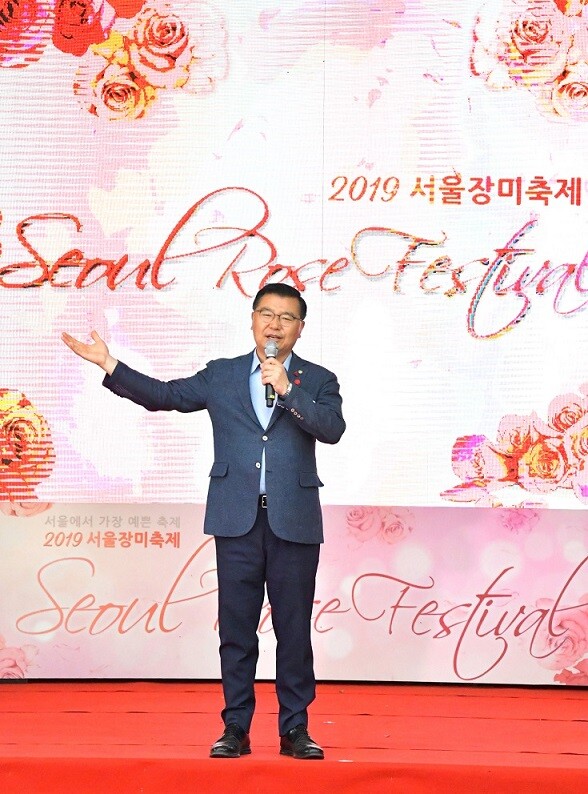 | ▲ 2019 서울장미축제에 참석한 류경기 구청장이 인사말을 하고 있다.(사진=중랑구청 제공) |