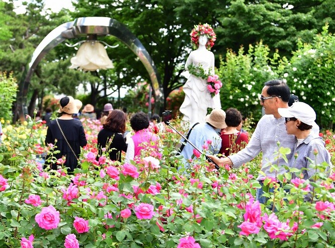 코로나19 해제 후 4년 만에 재개한 중랑구의 서울장미축제에서 많은 관람객들이 완연한 봄을 만끽하길 바라는 의미를 담았다.