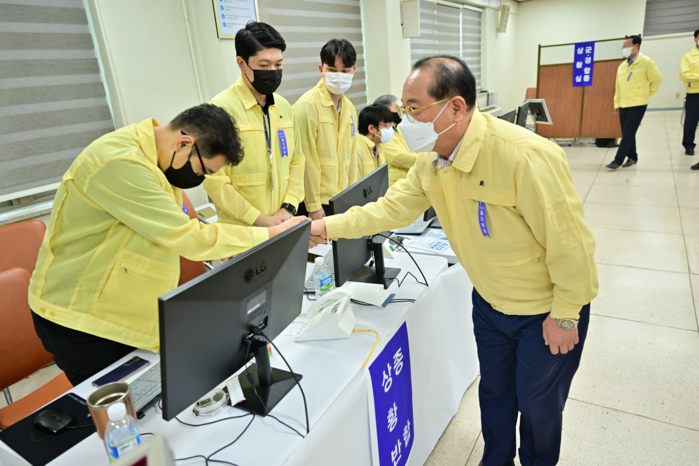 문차복 의장을 비롯한 의원 15명은 그간의 연습 상황을 보고받은 후에 근무자들을 일일이 격려하며 위로의 말을 전했다.