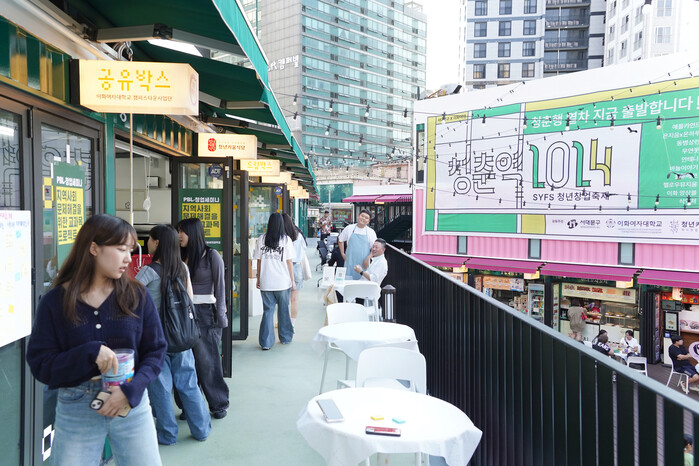 이 가운데 ‘청춘마당’은 이화여대 풍물놀이패 동아리 ‘액맥이’의 개막 공연, 청춘의 고민을 나누고 공감하는 ‘청춘토크쇼’, 재즈 아티스트 ‘윤석철 트리오’와 이화국악앙상블, AI로 음악을 제작하는 기업 ‘마이뮤직’ 등의 공연으로 꾸며졌다.