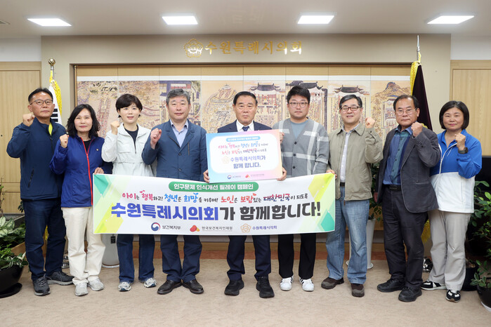 [수원=임종인 기자] 경기 수원시의회가 최근 인구감소와 고령화 문제에 대한 사회적 인식을 제고하고자, 한국보건복지인재원 및 보건복지부와 함께 인구문제 인식개선 릴레이 캠페인에 참여했다.