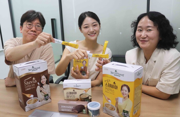| ▲ 펄세스 임직원들이 스테비아 신상품과 함께 사진을 촬영하고 있다. (사진=쿠팡 제공) |