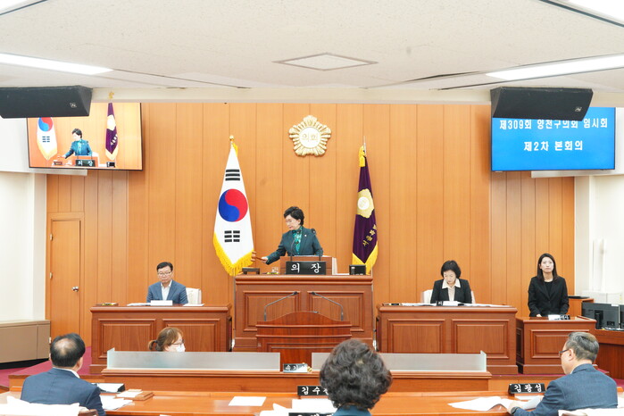 [시민일보 = 박소진 기자] 서울 양천구의회(의장 윤인숙)가 최근 제309회 임시회 2차 본회의를 끝으로 제309회 임시회를 폐회했다고 밝혔다.