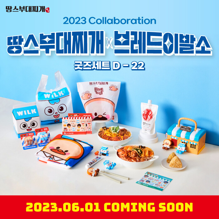 땅스부대찌개는 오는 6월 1일부터 '브레드이발소' 캐릭터 '브레드 피트'와 '윌크 화이트'를 활용한 실리콘 칫솔걸이 2종이 포함된 한정판 콜라보 세트를 판매할 예정이다. 브레드이발소 캐릭터의 그림이 그려진 포장 및 배달 봉투를 사용하여 콜라보레이션의 특징을 더욱 돋보이게 할 계획이다.