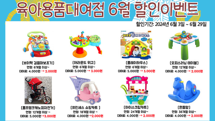 [부산=최성일 기자] 부산시 사하구 다대2동에 소재한 두송종합사회복지관(관장 김동현)은 지역주민을 위해 육아용품대여점[아이꿈터]을 운영하고 있다. 육아용품대여점 [아이꿈터]에서는 매월 육아용품 및 대형완구 일부 품목 대여료 할인과 이용 후기 작성 이벤트를 진행 하고 있다.