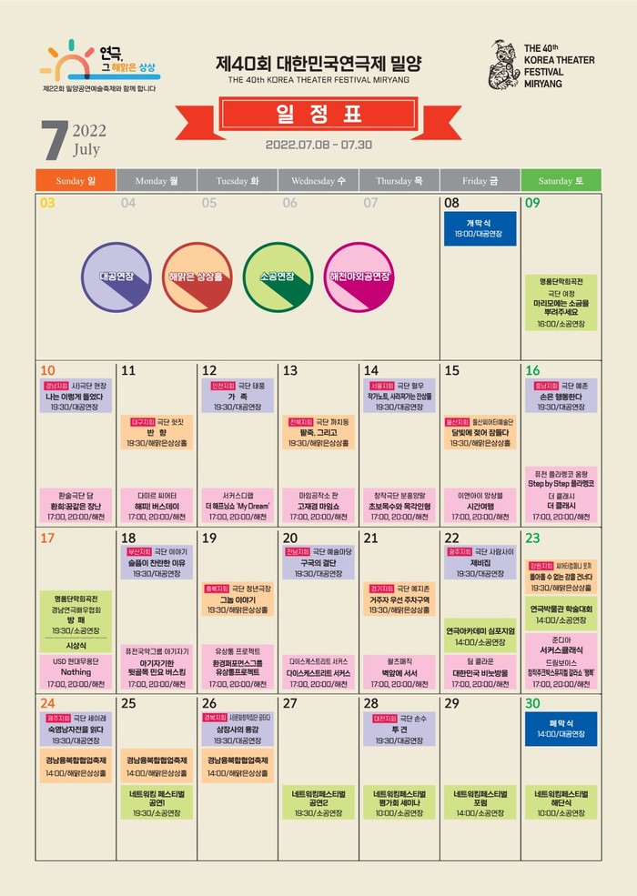 | ▲ ‘제40회 대한민국연극제 밀양’ 일정표 |