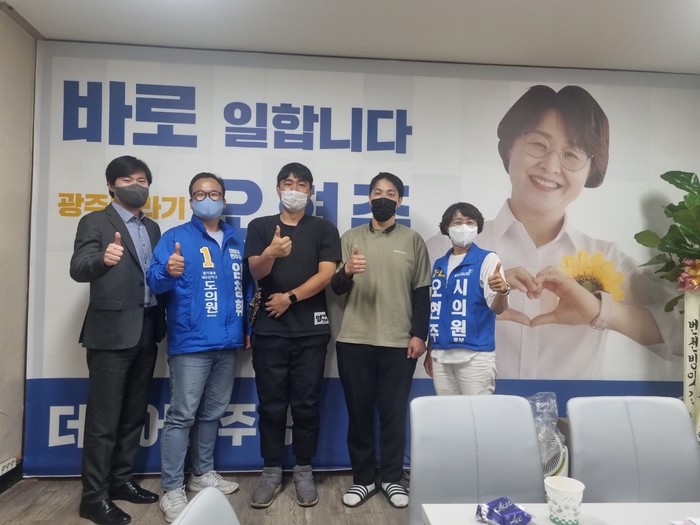 [광주=전용원 기자] 경기 광주시 나선거구(경안동, 쌍령동, 광남 1·2동)에 출마한 더불어민주당 오현주 광주시의원 후보와 임창휘 경기도의원 후보가 최근 배달라이더로 활동하는 경안동 새마을회 서진수 총무, 오정섭 군과 함께 공공배달앱 활성화에 대한 간담회를 열고 의견을 청취했다.