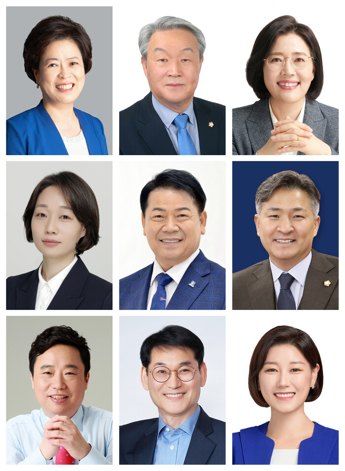 | ▲ (왼쪽 위에서부터) 노경숙 대표의원, 김철수(더불어민주당)·최태영·양명희·변정열 · 김영곤·김용권·곽노혁·김미주 의원 모습. (사진=구로구의회 제공) |