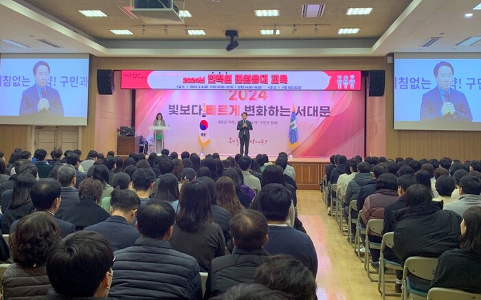 [시민일보 = 이대우 기자] 서대문구(구청장 이성헌)가 최근 구청 대강당에서 전직원을 대상으로 민원응대 서비스 품질향상을 위한 교육을 실시했다.