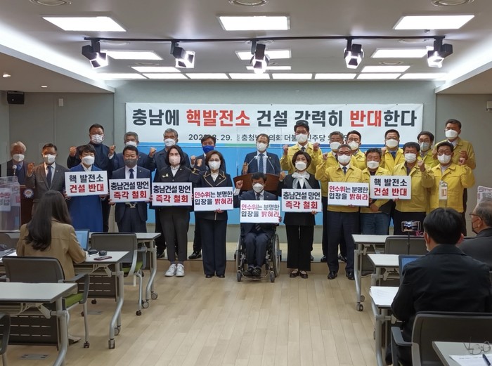 이날 기자회견에서 이계양 의원은 “소형 핵발전소(SMR)를 충남 당진 등 기존 석탄화력발전소가 있던 지역에 세울 수 있다는 주한규 서울대 교수의 발언에 충남도민은 격노하고 있다”라며 “지금까지 석탄화력발전소로 인한 유해배출가스, 미세먼지, 비산먼지 그리고 초고압 송전철탑으로 피해와 고통을 감내해 온 충남 도민의 희생을 또다시 강요하는 처사”라고 강하게 분노했다.
