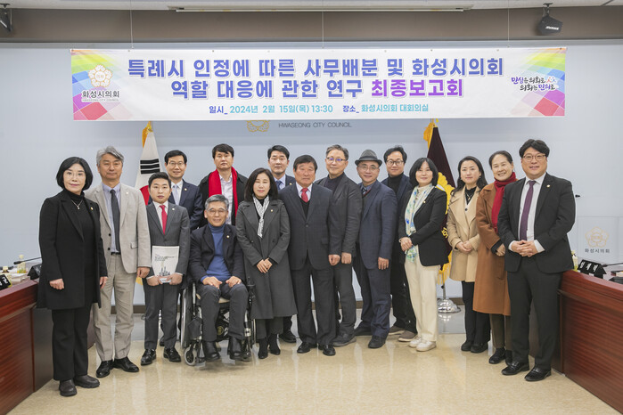 [화성=김정수 기자] 경기 화성시의회 의원 연구단체인 ‘화성특례시의회 준비연구회’가 최근 의회 대회의실에서 연구용역 최종보고회를 열었다.