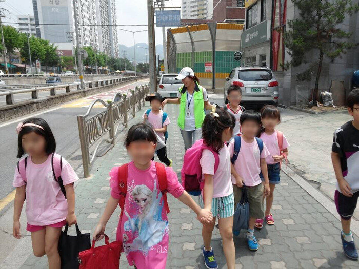 ‘어린이 교통안전지도사업’은 어린이들의 보행 안전을 돕는 제도로, ‘워킹스쿨버스(Walking School Bus)’ 라는 명칭으로 1992년 호주에서 처음 도입된 이후 영국, 뉴질랜드 등 여러 나라에서 효과적으로 운영되고 있으며 어린이 교통사고 예방과 보행 안전 확보에 큰 도움을 주는 것으로 평가받고 있다.