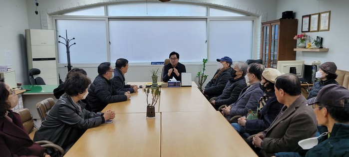| ▲ 지난 5일, 사당 대림아파트에서 개최된 주민설명회에서 박일하 구청장이 난방비 지원대책에 대해 이야기하고 있다.(사진=동작구청 제공) |