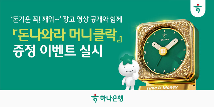 오는 30일까지 진행되는 이번 이벤트는 하나원큐 앱 내 이벤트 페이지에서 ‘돈기운 꼭!깨워’ 광고 영상을 시청한 뒤 퀴즈에 응모하는 방식으로 진행되며 총 1111명을 추첨해 '돈나와라 머니클락'을 증정한다.