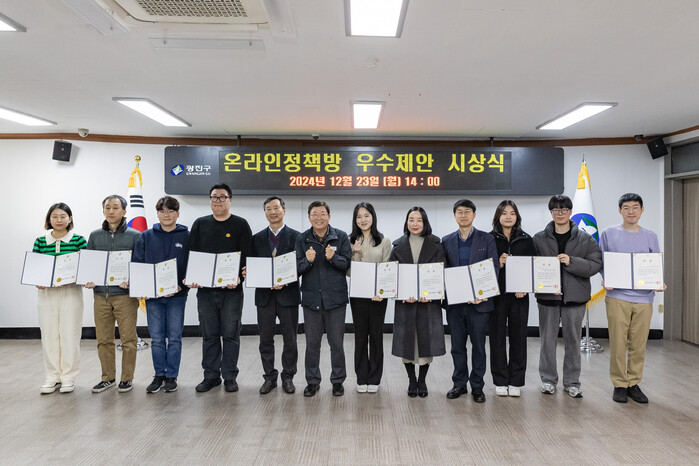 [시민일보 = 여영준 기자] 광진구(구청장 김경호)가 최근 구청 기획상황실에서 ‘쓰레기 줄이기 아이디어 특별공모전’에 참여한 우수제안 10건에 대해 시상식을 열고 상장을 수여했다.