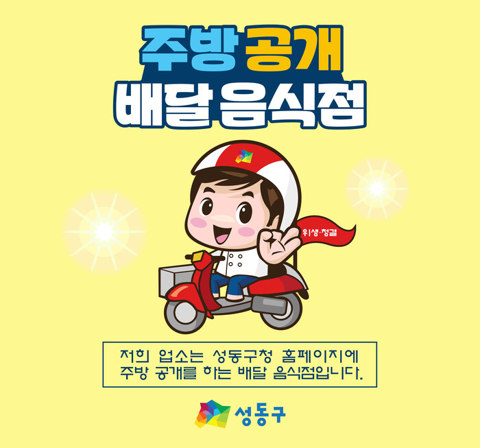 참여 대상 업소는 객석이 없거나 1~2개인 배달을 전문으로 하는 일반음식점과 휴게음식점으로, 신규 참여 신청 업소의 경우 조리장 위생 점검 후 성동구청 홈페이지에 사진과 영상이 공개된다.