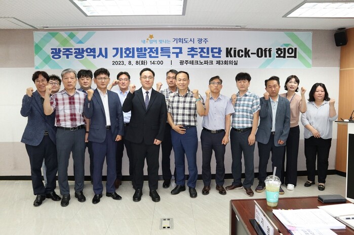 광주광역시(시장 강기정)는 8일 광주테크노파크에서 기회발전특구 지정을 위한 사전 준비로, 특구추진단 첫 기획회의(킥오프 회의)를 개최했다.