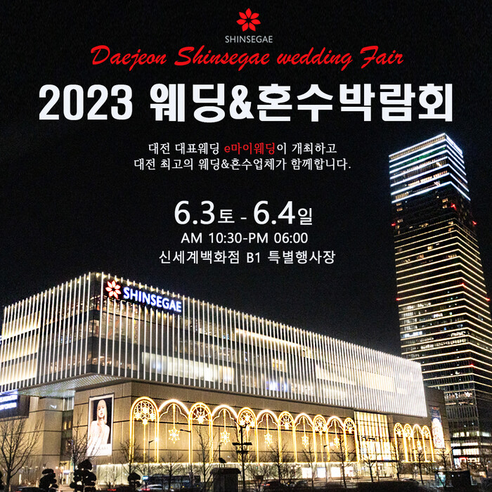 특히 이번 웨딩박람회는 대전 최고의 웨딩 및 혼수업체가 다수 참여하는 가운데 예비 부부 고객 상황 별 맞춤 웨딩 준비를 돕는 것이 포인트다.