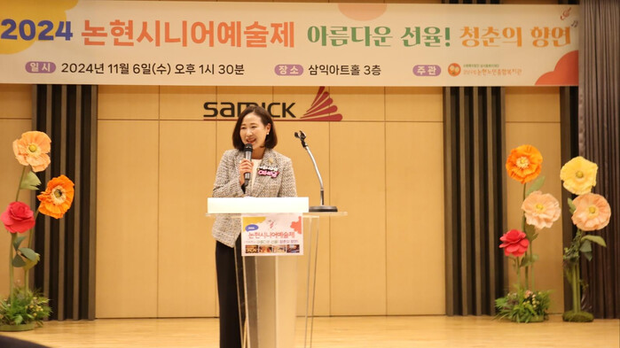 이번 예술제는 강남구립 논현노인복지관이 주최한 행사로 지역 어르신들이 참여한 합창, 발레, 전통무용 등 다양한 공연과 함께 캘리그래피, 사진, 시 등 문학 작품 전시도 함께 진행되었다.