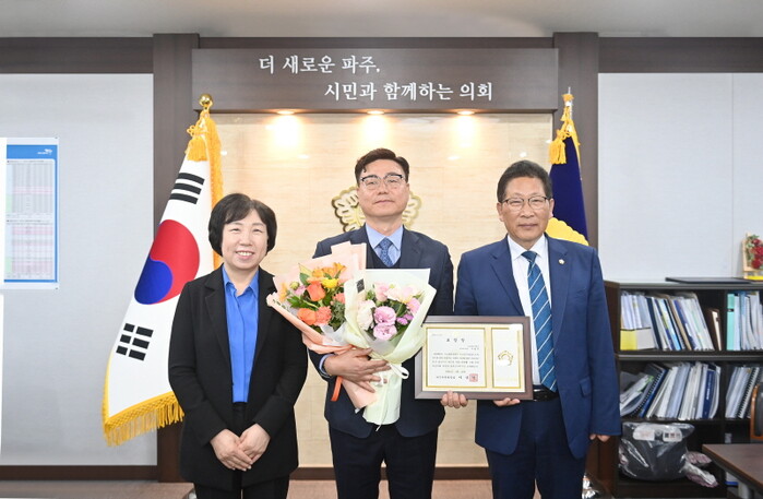 [파주=조영환 기자] 경기 파주시의회는 이달의 칭찬공무원으로 박은주 도시산업위원장이 추천한 이법주 도로보수2팀장(도로관리사업소)을 선정했다.