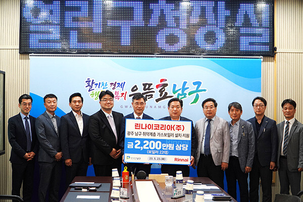 린나이가 ‘기부溫 GIVE ON’ 캠페인 진행을 위한 협약식을 위해 23일 광주 남구청을 방문했다.