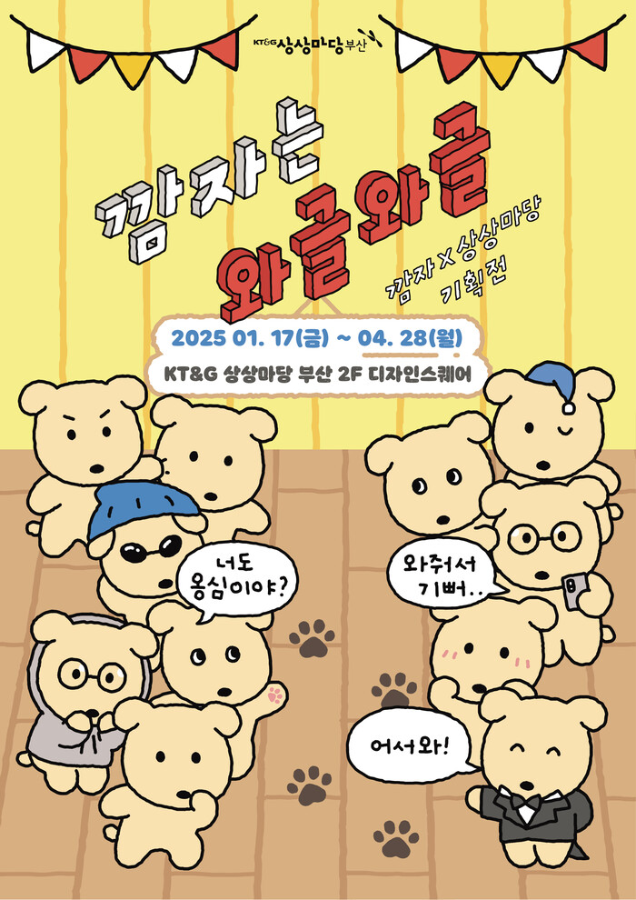 [시민일보 = 문민호 기자] KT&G 상상마당 부산이 강아지 캐릭터 ‘깜자’를 주인공으로 한 ‘깜자는 와글와글’ 기획전을 상상마당 부산 2층 디자인스퀘어에서 오는 4월 28일까지 개최한다.