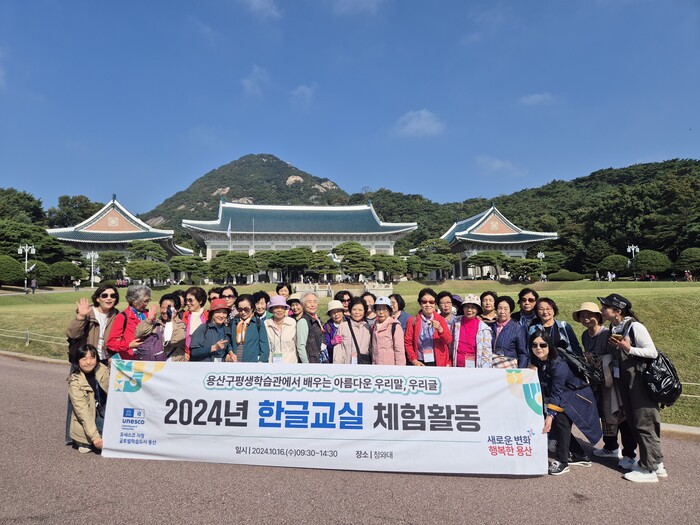 [시민일보 = 문민호 기자] 용산구(구청장 박희영)가 최근 한글교실 노인 수강생 31명을 대상으로 청와대 체험 학습을 진행했다고 18일 밝혔다.