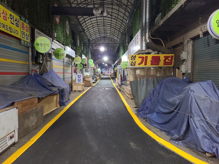 지난 4월에는 1억 원을 투입해 시장 내 도로 포장과 차선 도색을 마쳤으며 집수정을 설치하는 등 배수 공사도 완료했다.