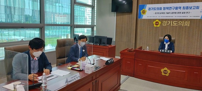 | ▲ '경기도교육청 기술직 공무원 운영 실태 연구' 용역 최종보고회 진행 모습. (사진제공=경기도의회) |