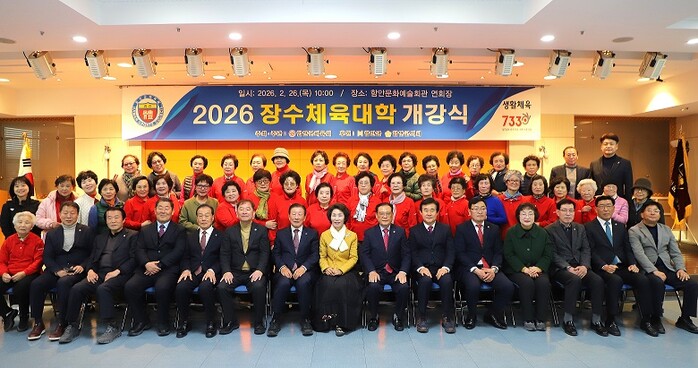 [함안=최성일 기자] 함안군은 지난 26일 함안군체육회가 함안문화예술회관 연회장에서 ‘2026 장수체육대학 개강식’을 성황리에 개최했다고 밝혔다.